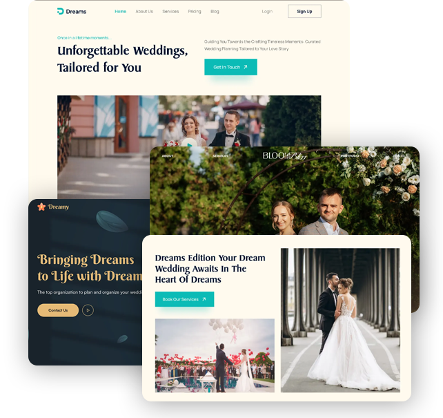 It does not matter if you deal with destination weddings or exquisite banquets, our wedding planner website development gives the necessary support to your business. We are creating the digital framework that not only supports but also allows your brand to grow, and thus, it is guaranteed that every single visitor will recognize the worth of your coordination skills at once.